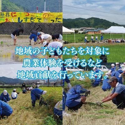 また地域の子供たちを対象に「農業体験」として、昔ながらの方法で田植えから稲刈り・脱穀までしてもらい、先人の苦労とお米の大切さを学んでもらっています。
